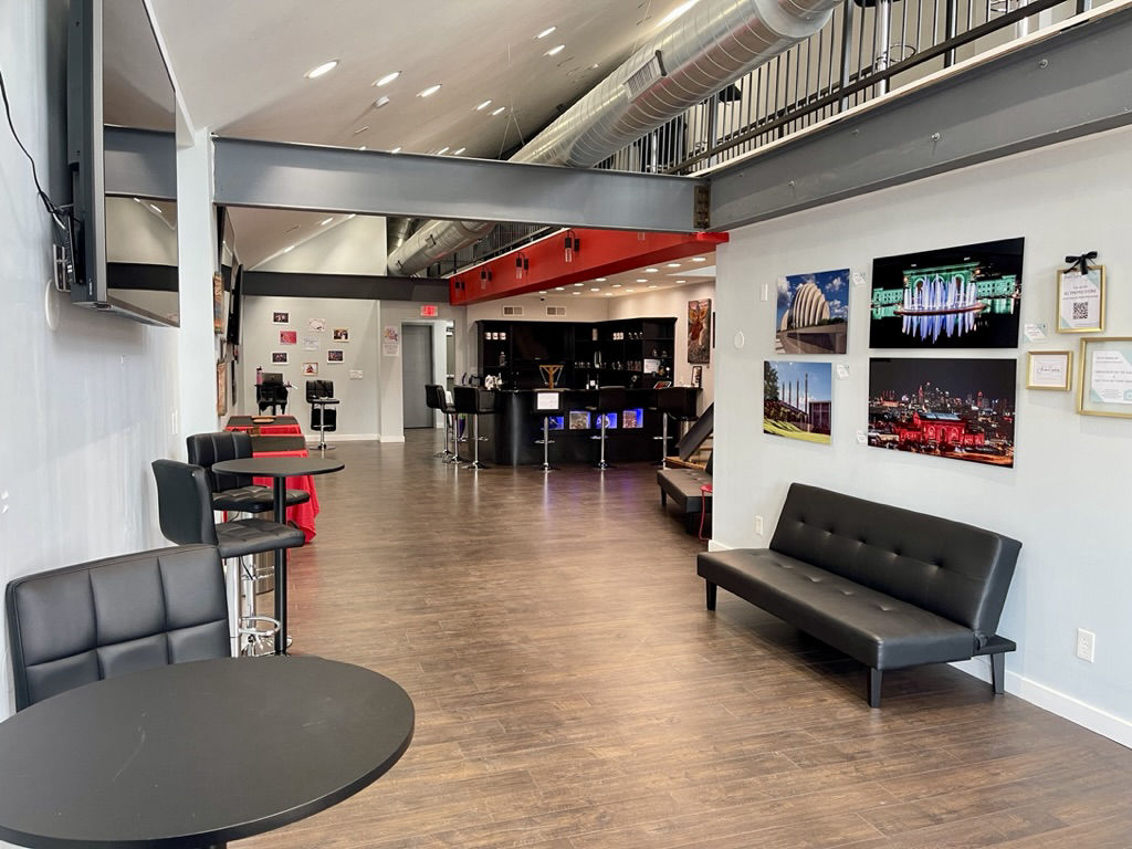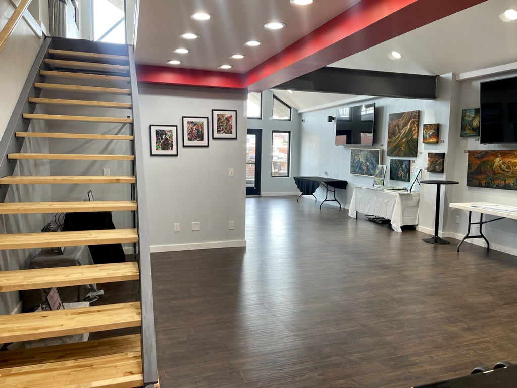 Roughly 2,400 square feet of split level space, bar and connected A/V makes it great for corporate events or private parties.